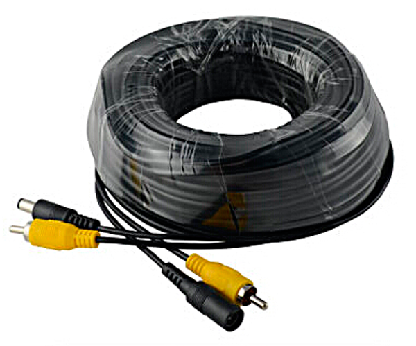 Готовый кабель для подключения микрофона, чёрного цвета длиной 30 метров. Имеет выводы с разъемами RCA для передачи аудиосигнала и выводы DC для передачи питания 12 Вольт.