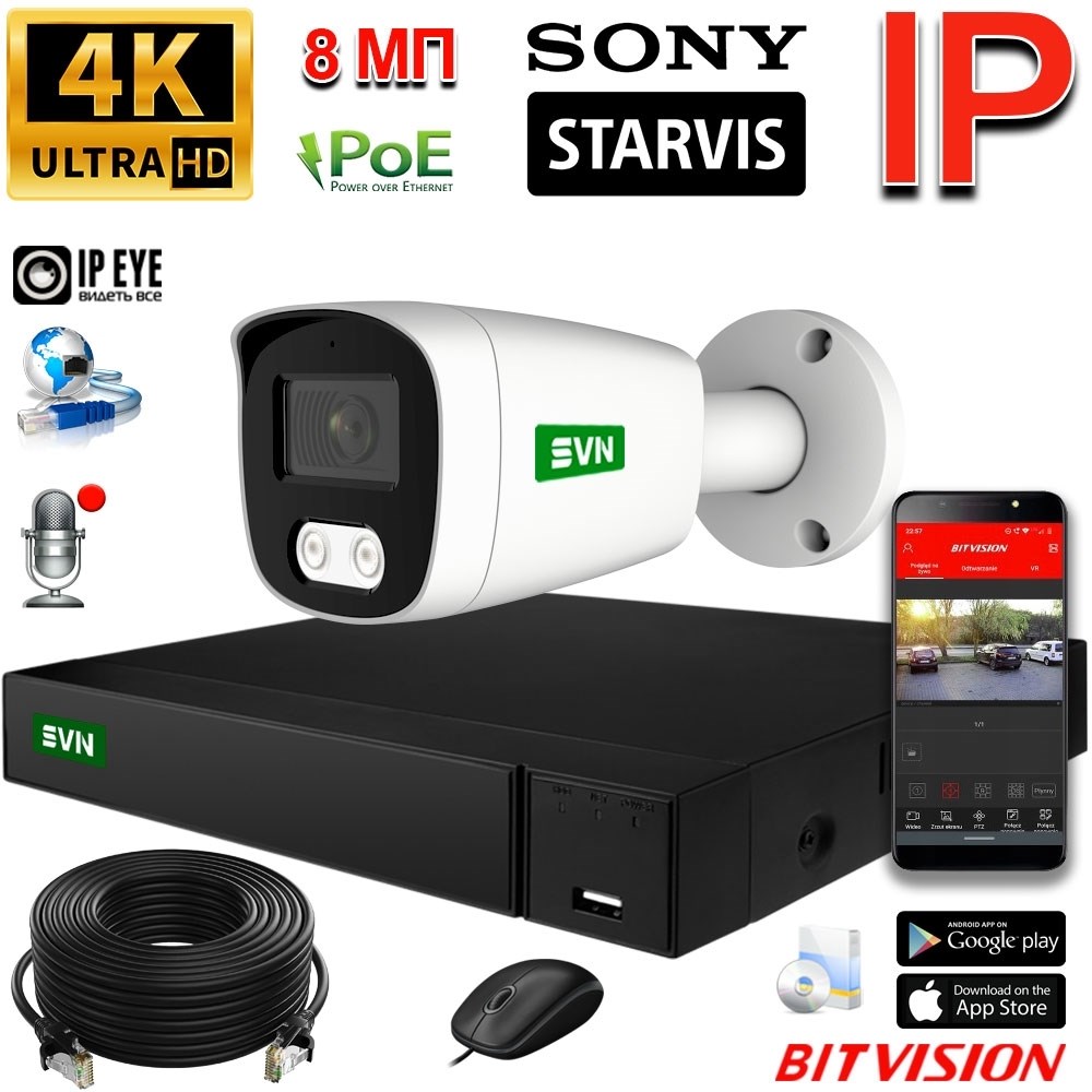 Камеры(маркетинг)Премиальная уличная IP-камера 8 Мегапикселей SONY с детектором движения, микрофоном, ночной ИК-подсветкой 25м
