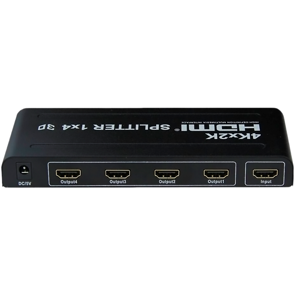 Разветвитель HDMI 1 вход 4 выхода VCONN, который передает и разделяет сигнал с одного источника (ресивер, плеер, игровая консоль) на четыре приемника в виде ТВ-дисплея (телевизор, панель, проектор) одновременно. Одно и то же изображение транслируется одновременно на 4 монитора. Имеет встроенный усилитель, что позволяет передавать сигнал 4Кх2К@30Гц до 15 метров, 1080р@60Гц до до 25 метров кабелем HDMI